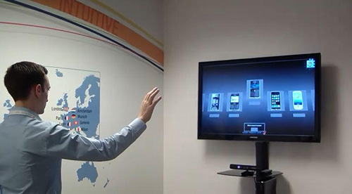 互動滑軌屏的主要原理是在相應的圖片上設置了不同的觸控點位,預先在滑行的軌道上安裝好傳感電路裝置,當參觀者推動液晶電視找到設置的感應點位時,傳感信號會被觸發,電視便可以自動切換到和圖片相關的視頻進行播放。
